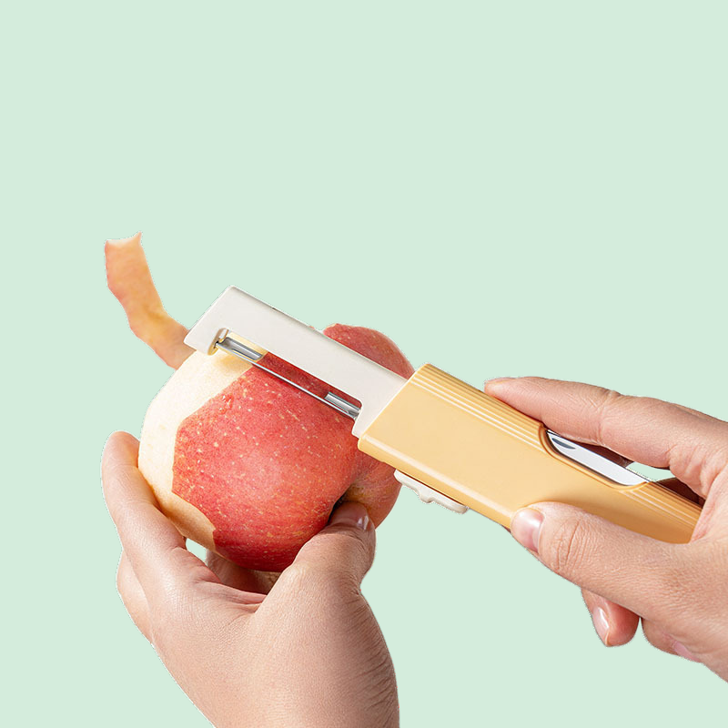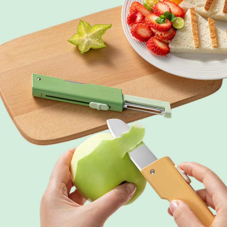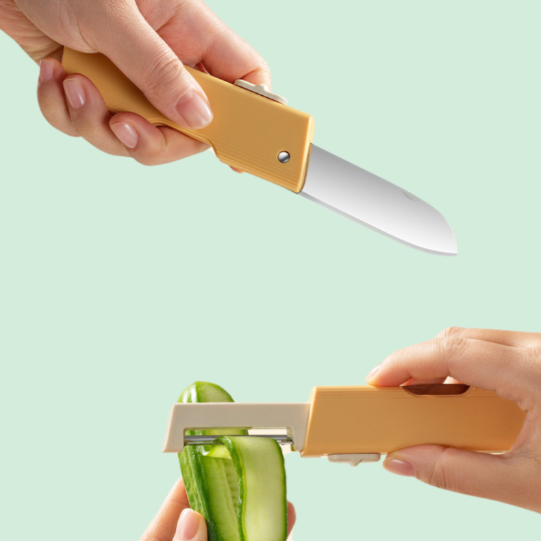 多機能2WAY折りたたみフルーツナイフは、コンパクト設計で携帯便利。果物の皮むきやカットに対応し、アウトドアや家庭用に最適。